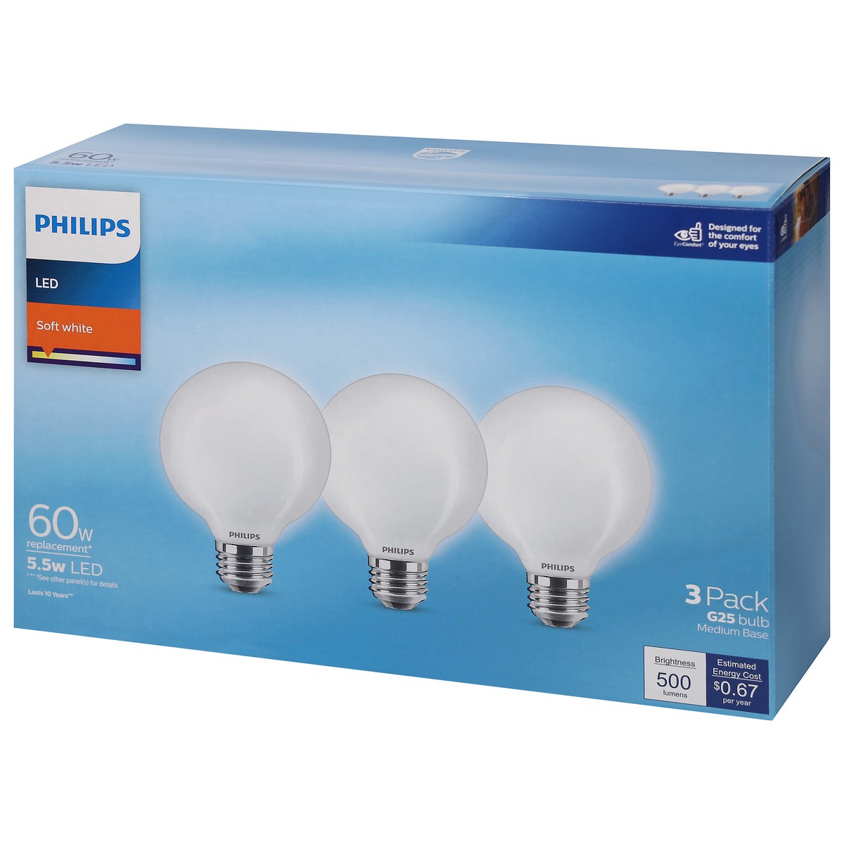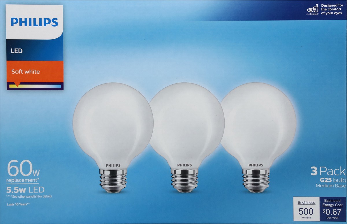 Philips 5.5 Watts Soft White LED Light Bulbs 3 ea