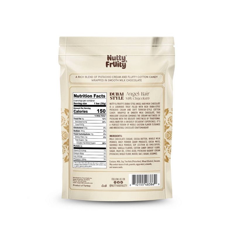 Nutty and Fruity Dubai Angel Hair Milk Chocolate Bars - 6.35oz/6ct