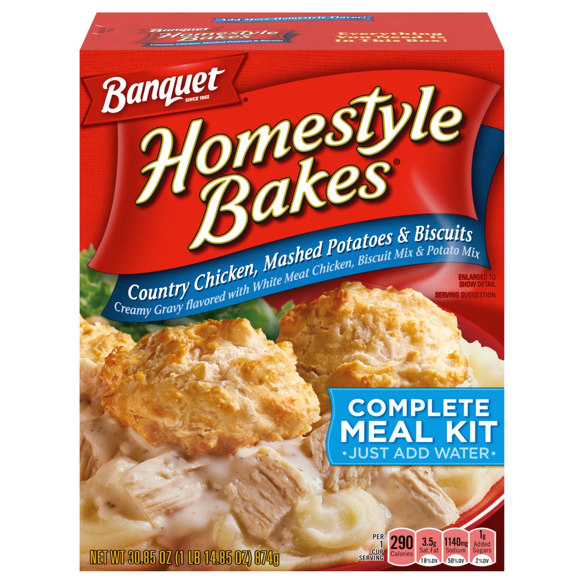 - One 30.9 oz Banquet Homestyle Bakes Country Chicken