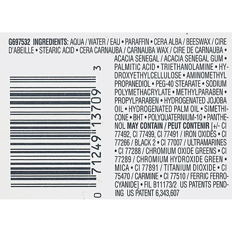 Aqua / Water, Paraffin, Cera Alba / Beeswax, Stearic Acid, Copernicia Cerifera Cera / Carnauba Wax, Acacia Senegal Gum, Palmitic Acid, Triethanolamine, Hydroxyethylcellulose, Aminomethyl Propanediol, …