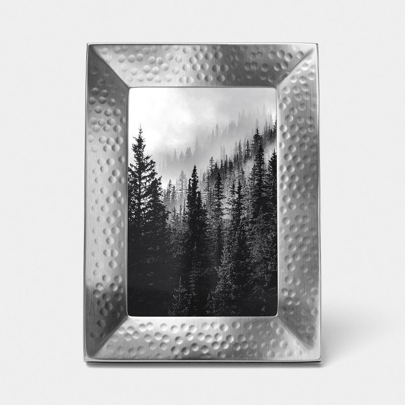 Display your favorite memories with the 4"x6" Hammered Metal Frame from Threshold™. Designed with a textured silver finish, it adds a subtle update to your space. The frame holds one photo and can be …