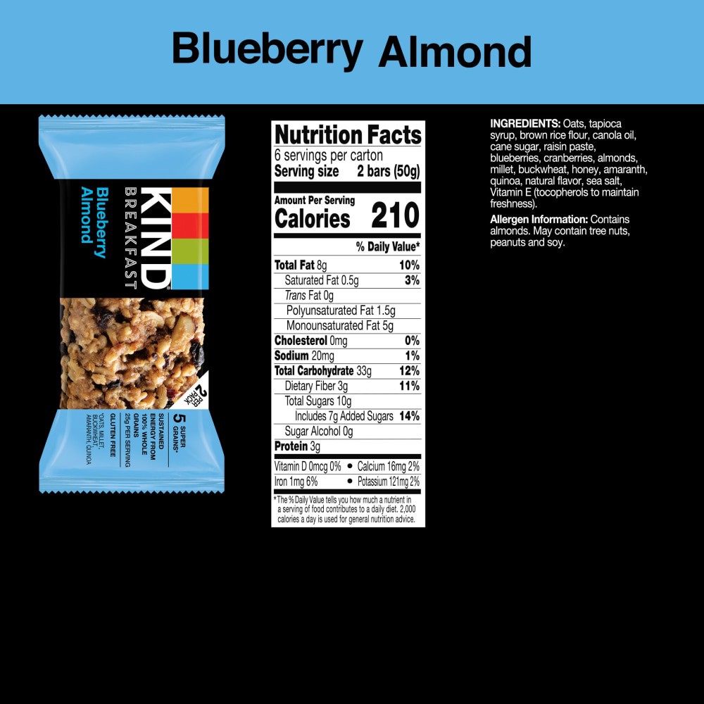 KIND Breakfast, Healthy Snack Bar, Blueberry Almond, Gluten Free Breakfast Bars, 100% Whole Grains, 1.76 OZ Packs (6 Count)