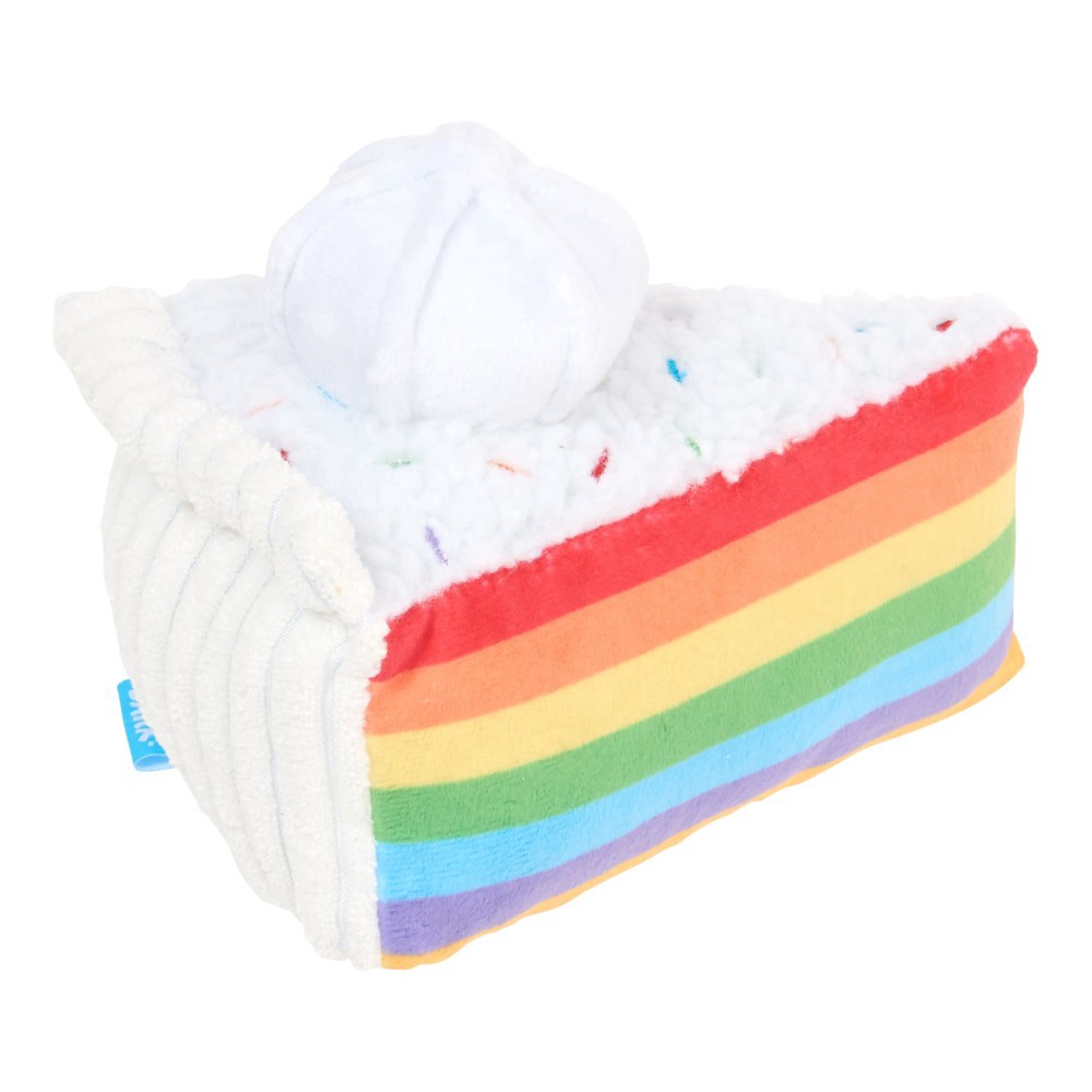 This piece-of-cake dog toy is a slice of love, man! A triangle base squeaker produces a very satisfying sound, plus there is a secret hidden squeaker inside the adorable dollop of frosting. It's a dog…