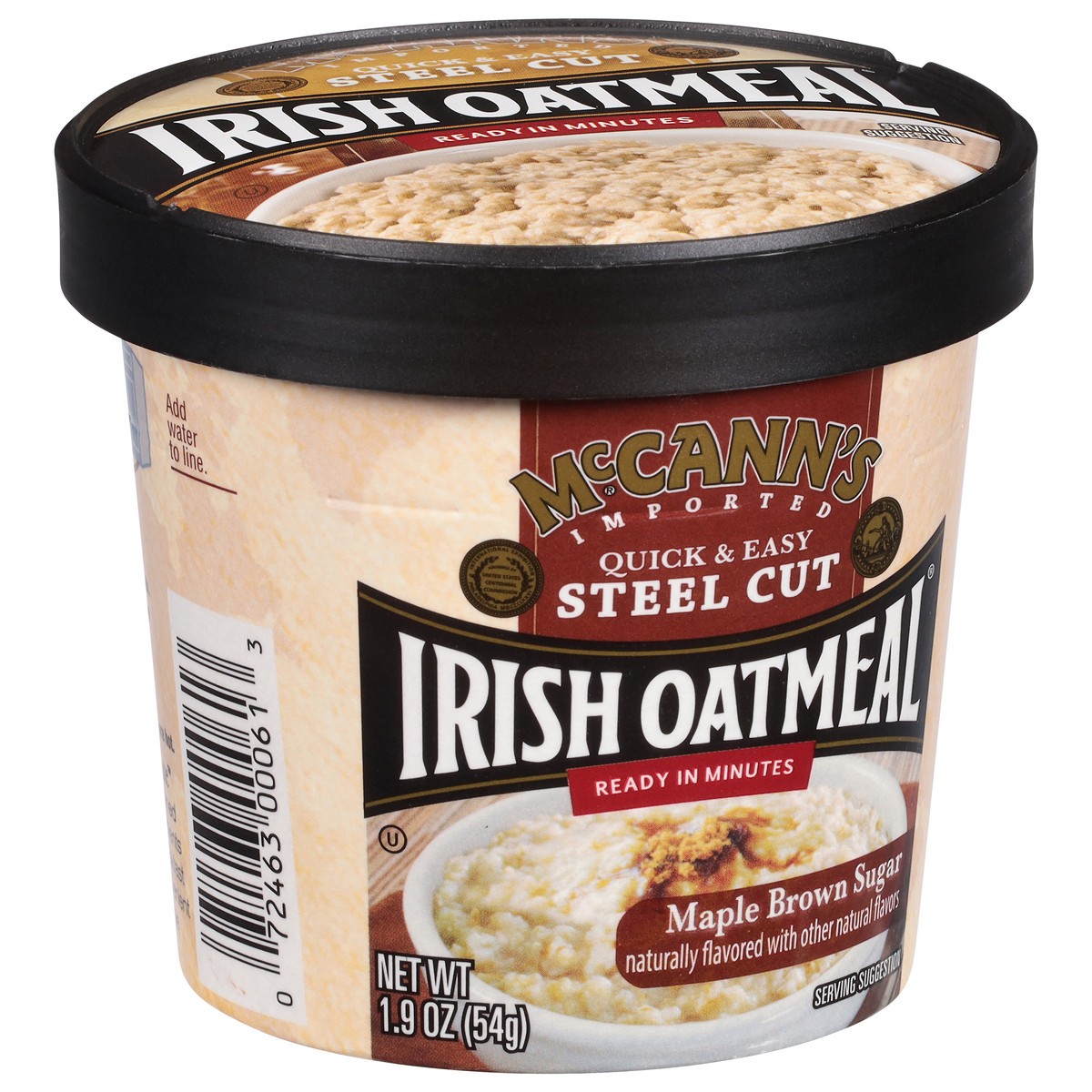 McCann's Imported Maple Brown Sugar Quick & Easy Steel Cut Irish Oatmeal, Instant Oatmeal, Kosher, 1.9 OZ Cup