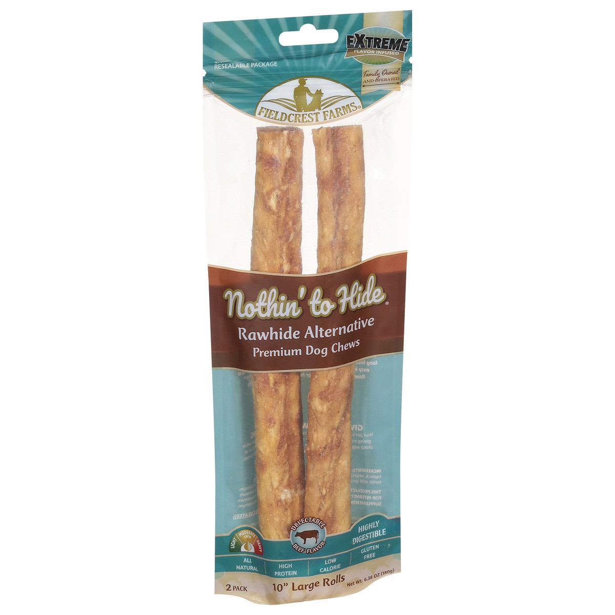 Fieldcrest Farms Nothin' to Hide Premium 10 inches Large Rolls 2 Pack Beef Flavor Dog Chews