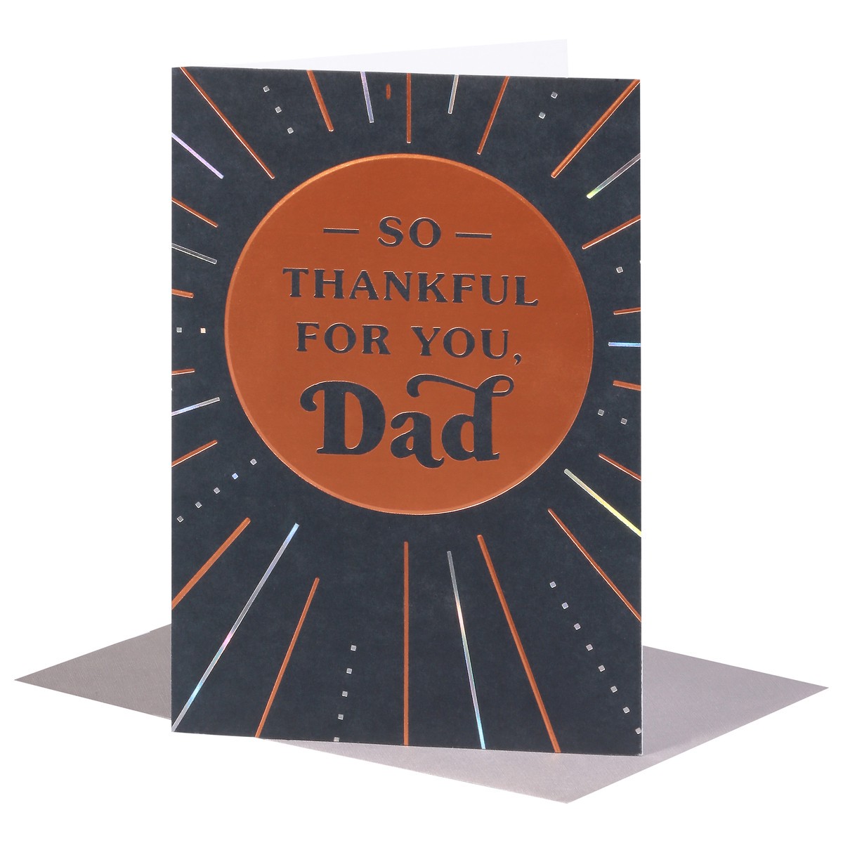 Show dad how grateful you are with this sophisticated birthday card. Featuring a bold design with gold and silver foil stamping on a black background, this card is sure to be one he’ll appreciate. The…