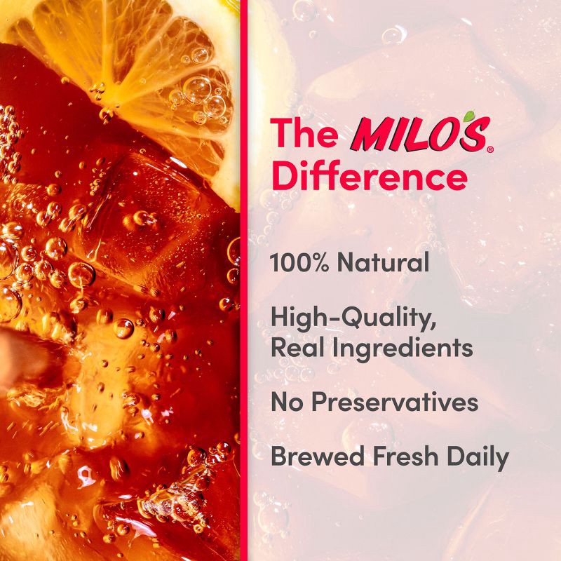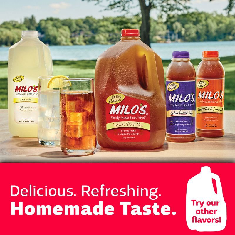 Delicious. Refreshing. Homemade Taste.Milo's Extra Sweet Tea is brewed fresh daily using three simple, high-quality ingredients and no preservatives for a delicious, refreshing taste. Milo's Extra Swe…