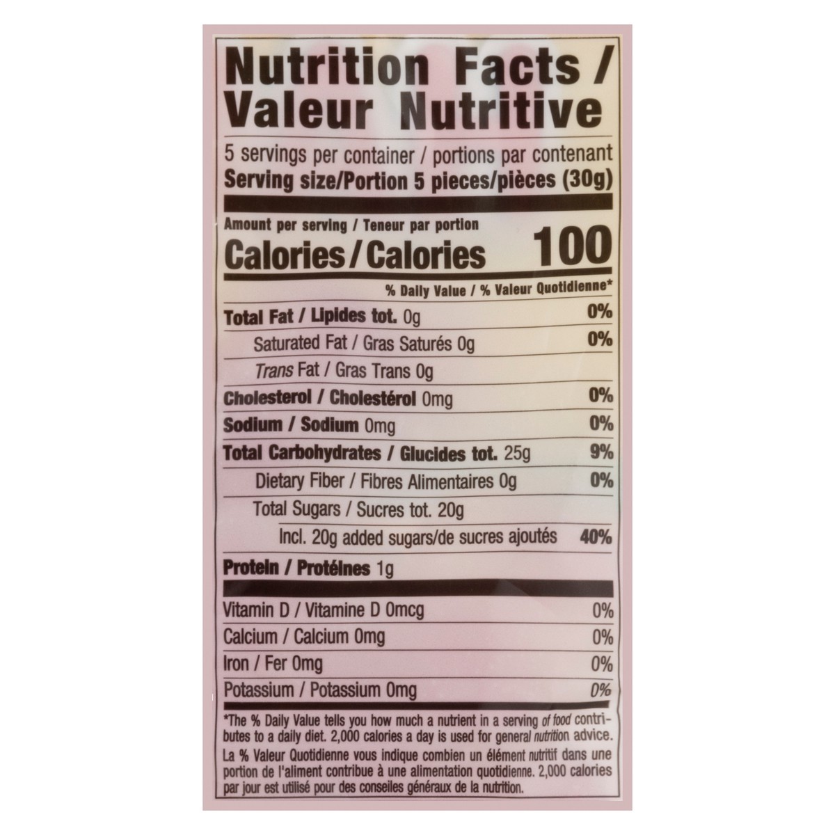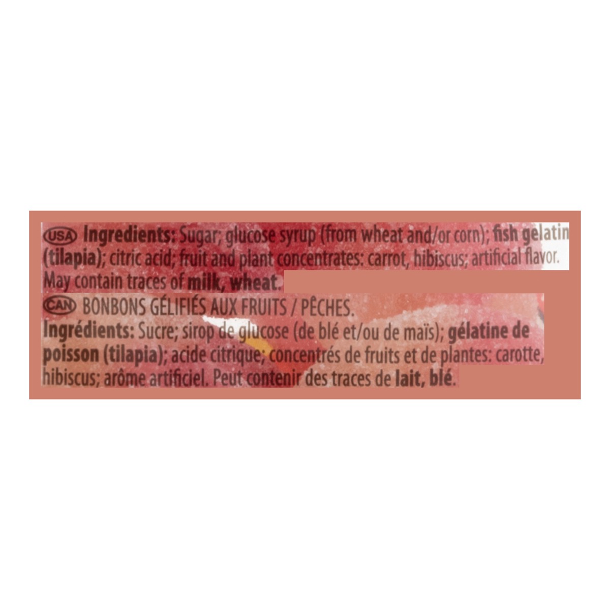 Sugar; Glucose Syrup (from Wheat and/or Corn); Fish Gelatin (Tilapia); Citric Acid; Fruit and Plant Concentrates: Carrot, Hibiscus; Artificial Flavor.