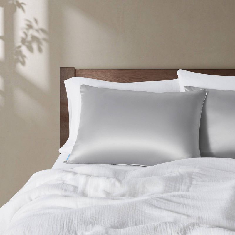 Calm Jumbo Medium Density Satin Bed Pillow Silver