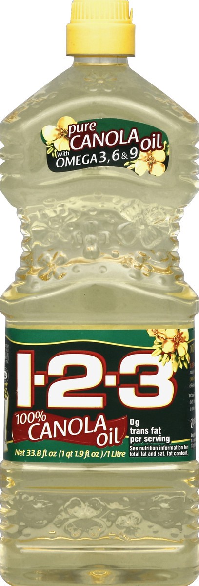 Pure canola oil with omega 3, 6 & 9. 0 g trans fat per serving. See nutritional information for total fat and sat. fat content. www.lacorona.com.mx. 100% canola oil. 1-2-3 canola oil contains a balanc…