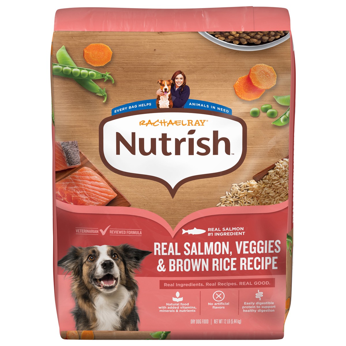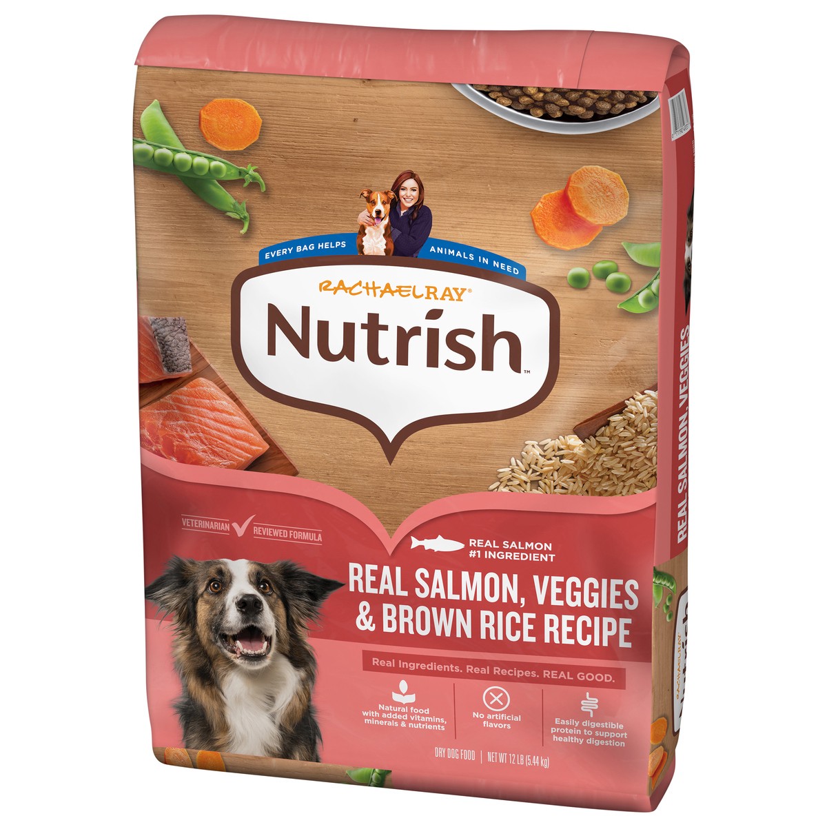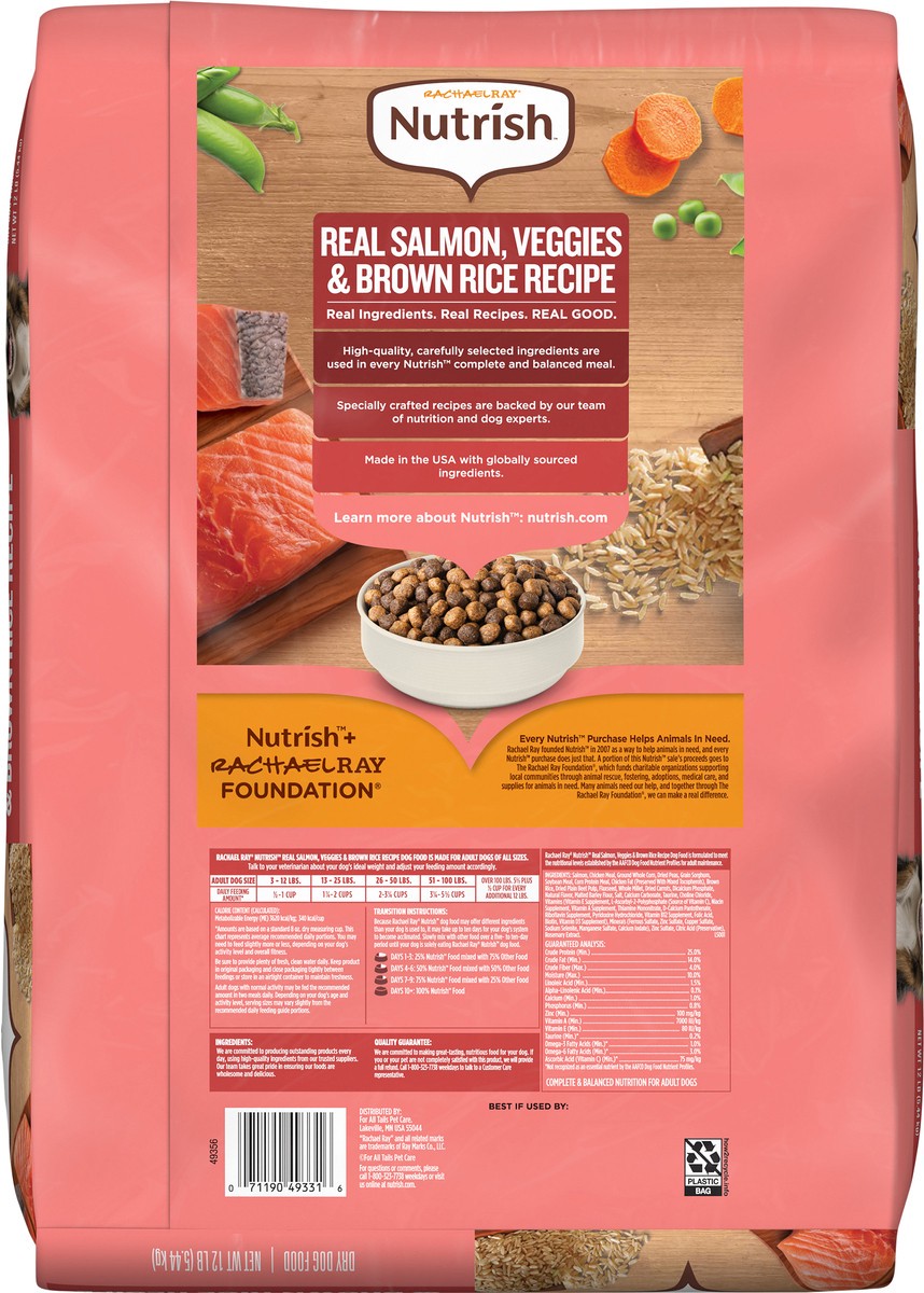 Rachael Ray Nutrish Dry Dog Food Real Salmon, Veggies & Brown Rice Recipe, 12 lb
