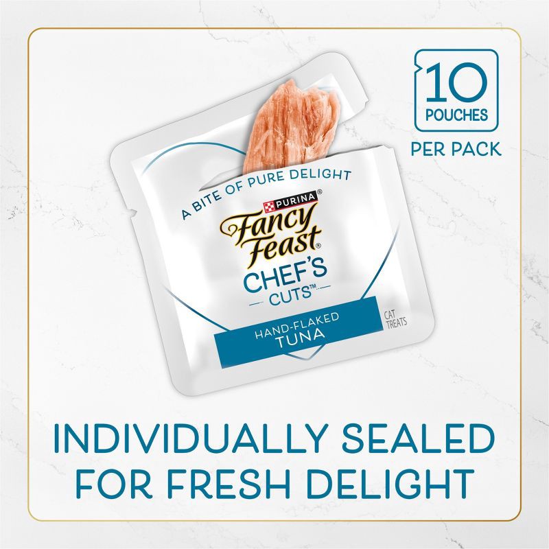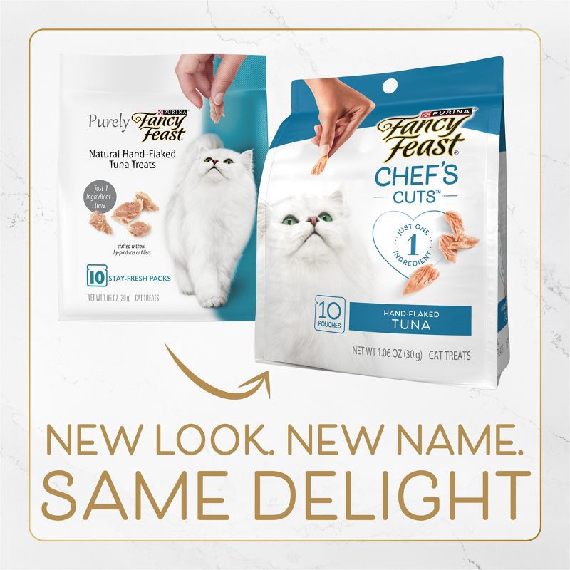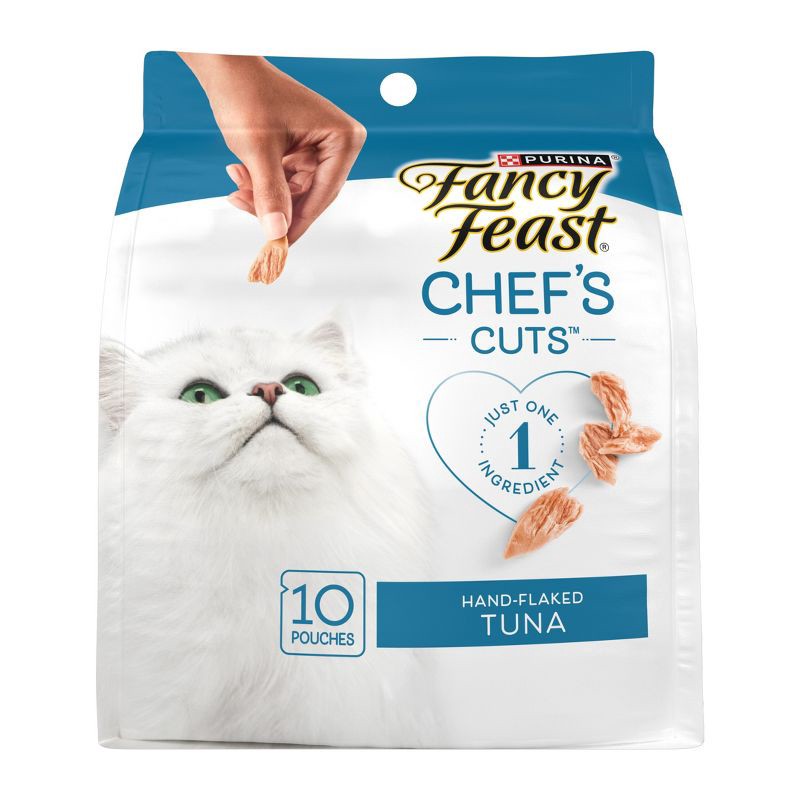 - Fancy Feast Treats: Purina Fancy Feast Chef's Cuts Tuna Cat Treats made of pure, natural hand-flaked tuna.