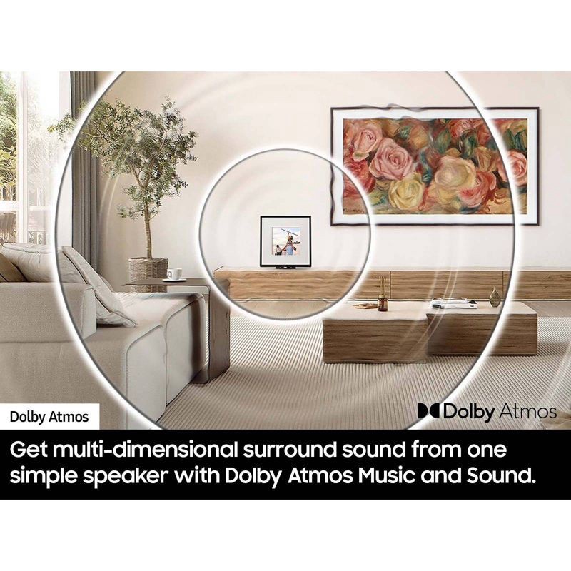 - Q-Symphony - Get a more robust audio experience when you sync your Samsung TV speakers and Music Frame. With Q-Symphony, all audio channels are optimized so your speakers work together to operate as one.* Add a Samsung Soundbar to unlock a new level of powerful audio and experience content like never before. *Q-Symphony using the Music Frame is available only when connected with a (1) 2023-2024 Samsung TV, or (2) 2023-2024 Samsung TV and 2024 Samsung Soundbar