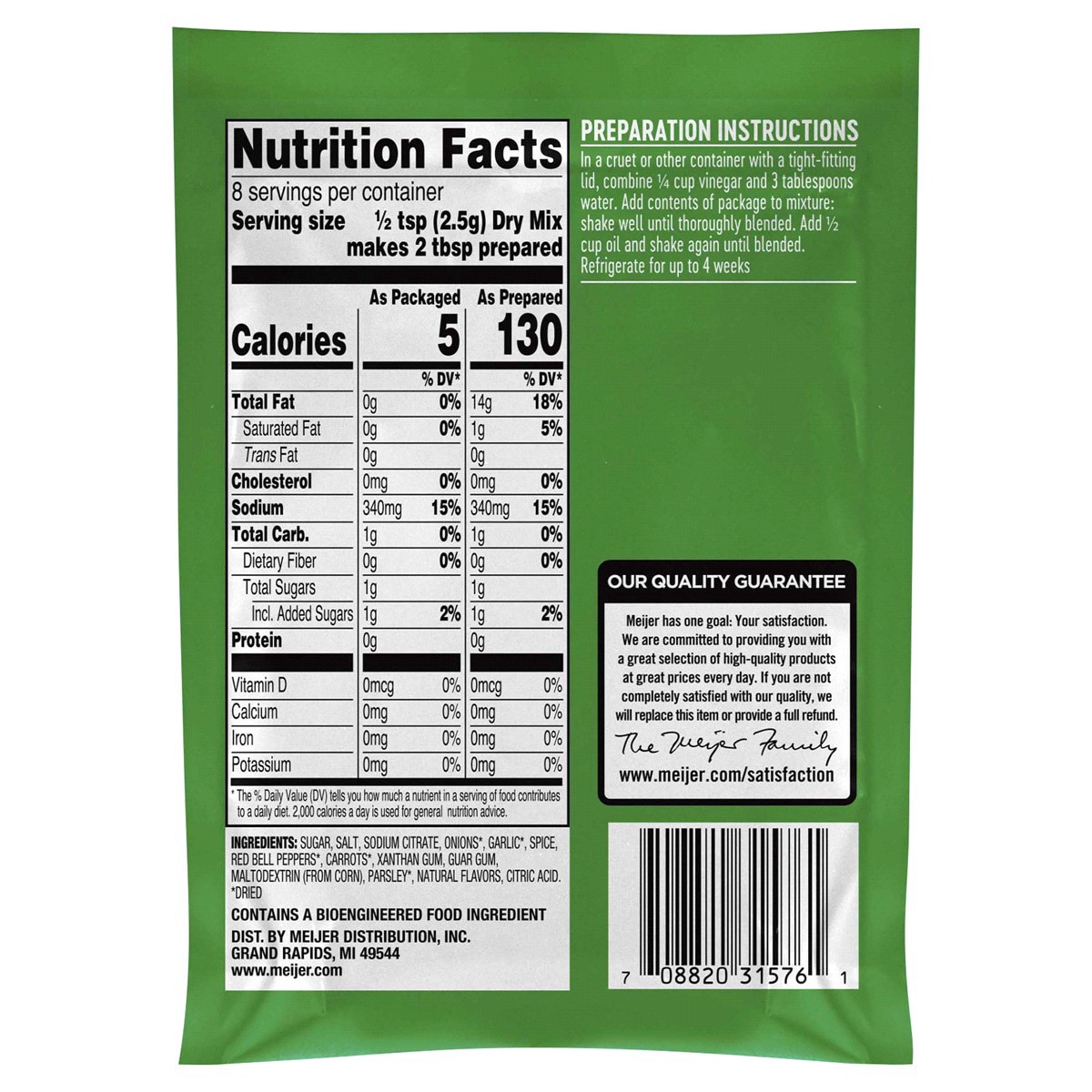 Enjoy the bold flavors of Italian dressing in minutes with Meijer Italian Dressing Mix. Just combine the packet contents, vinager, oil and water, and shake until blended. Then enjoy this classic dress…