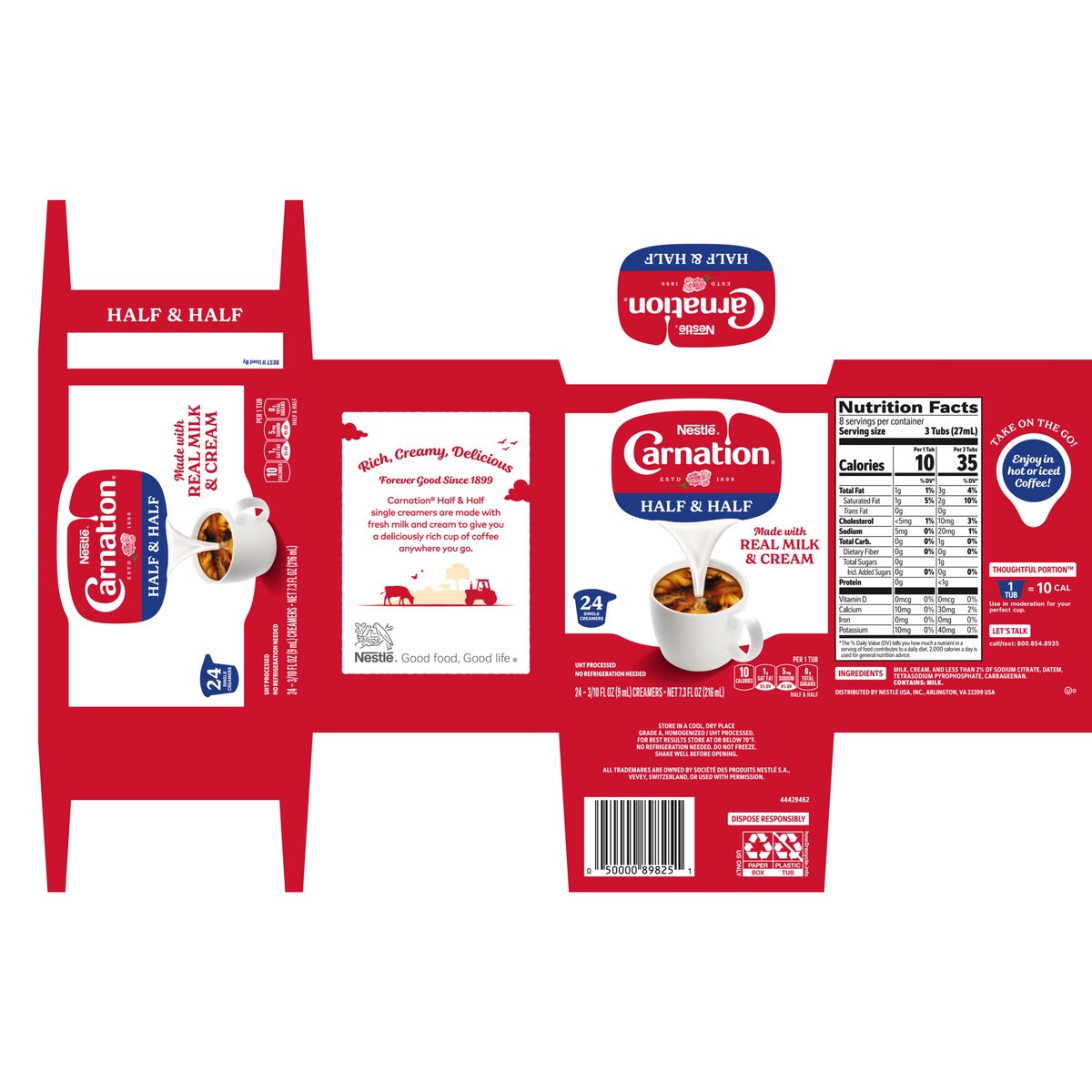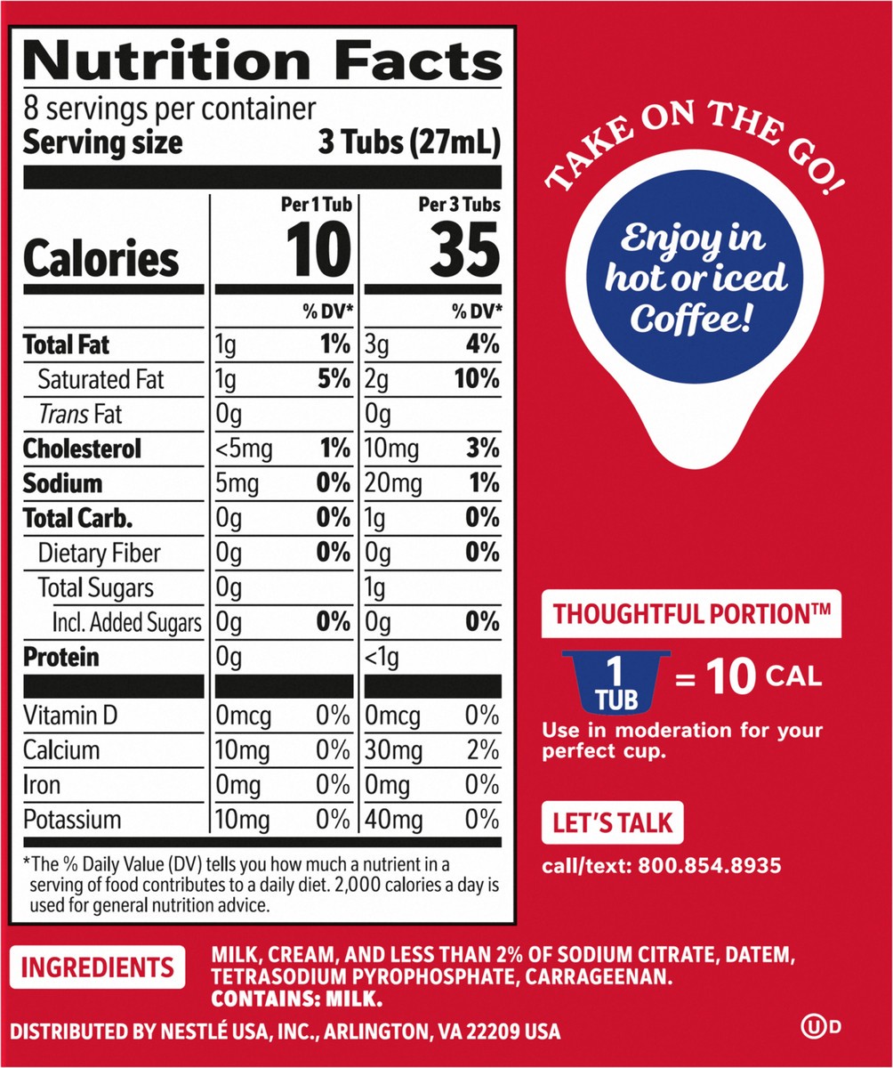 Thoughtful Portion TM 1 Tub = 10 Calories Use in moderation for your perfect cup. FOP: 24 SINGLE CREAMERS, FOP: UHT PROCESSED, FOP: NO REFRIGERATION NEEDED, Side Panel: Rich, Creamy, Delicious, Side P…