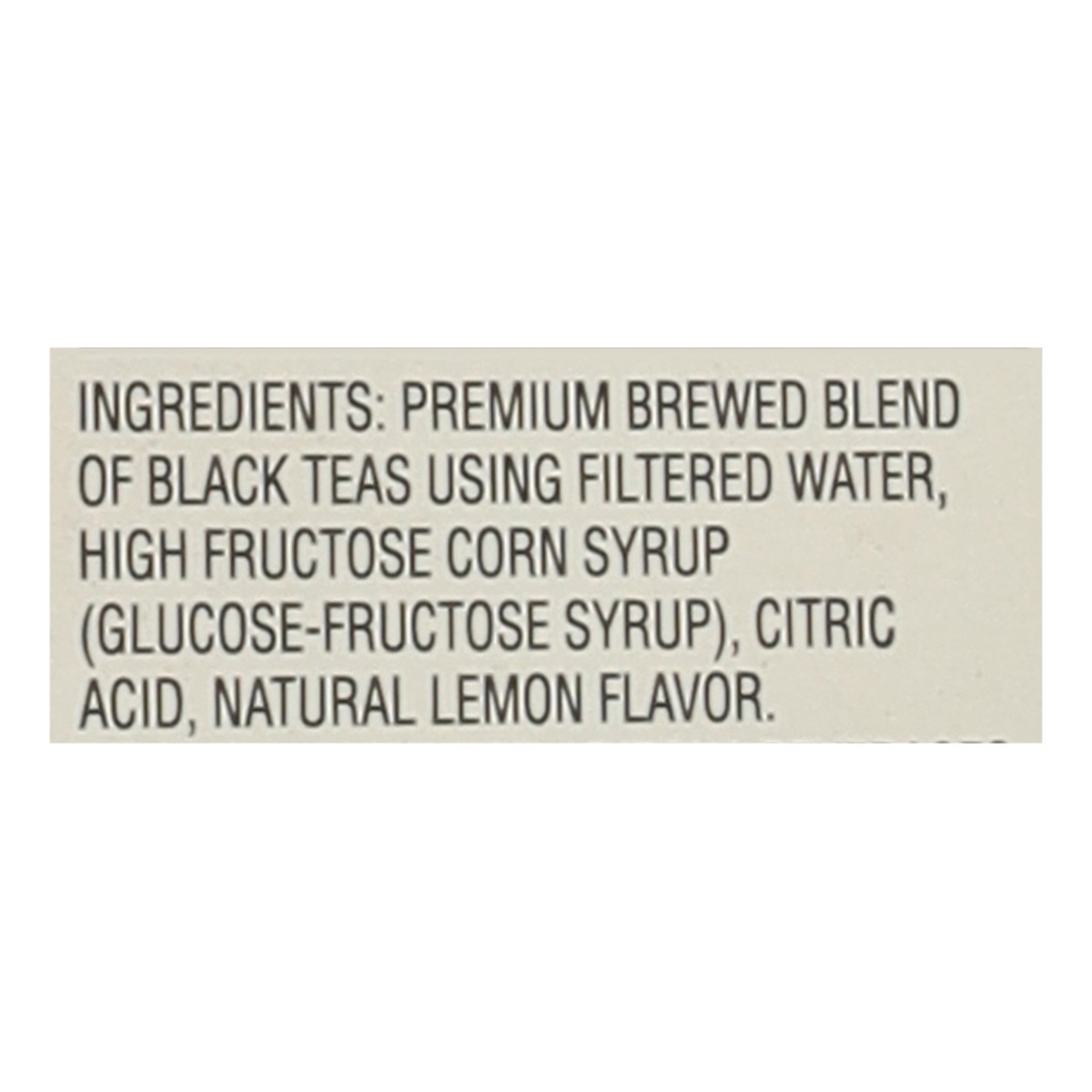 Premium Brewed Blend of Black Teas Using Filtered Water, High Fructose Corn Syrup (Glucose-Fructose Syrup), Citric Acid, Natural Lemon Flavor.