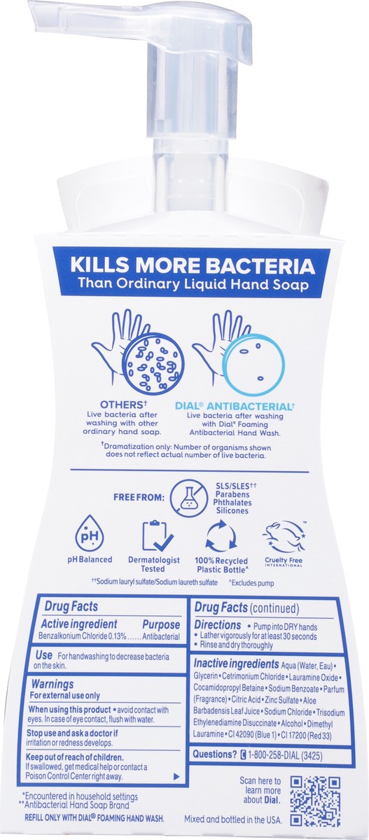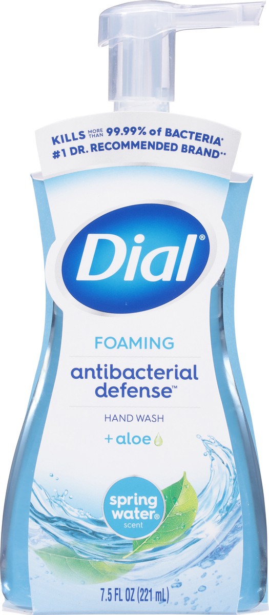Enjoy the fresh scent of Dial Antibacterial Defense Spring Water foaming hand wash. This formula contains aloe vera and kills more than 99.99% of bacteria* while being gentle on skin, leaving it feeli…
