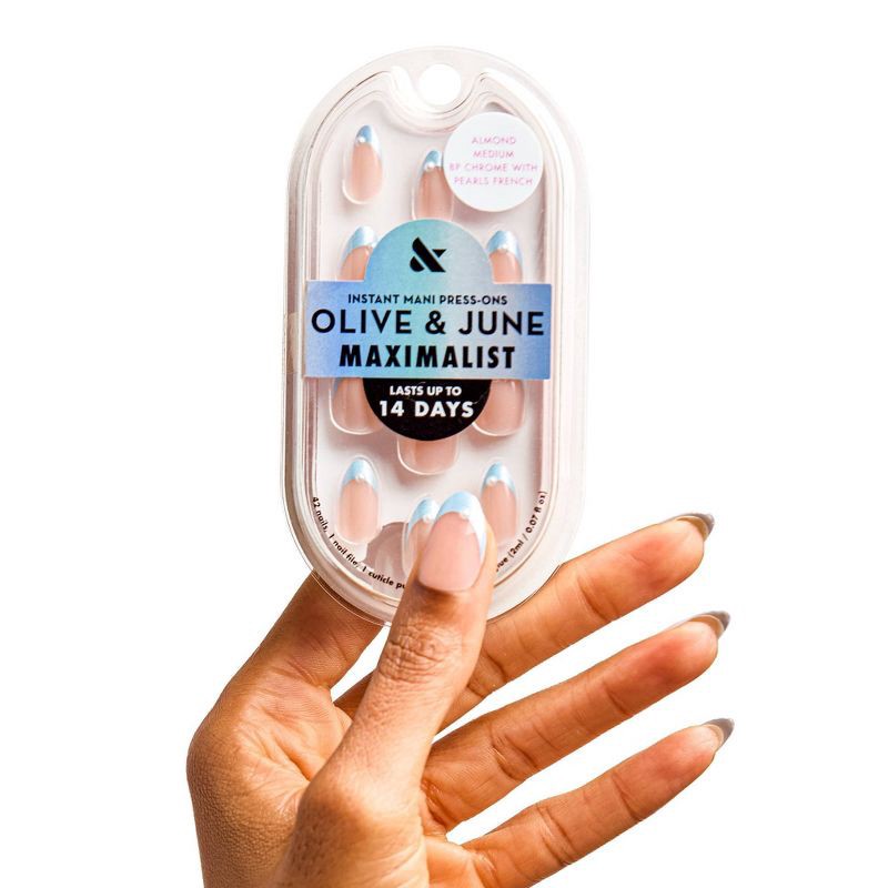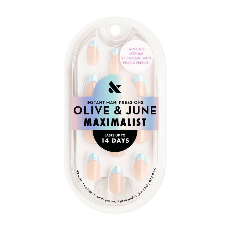Olive & June Press-On Fake Nails - Maximalist - M Almond - BP Chrome with Pearls French - 42ct