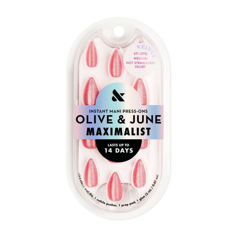Olive & June Press-On Fake Nails - Maximalist - M Stilleto - Hot Strawberry Velvet - 42ct