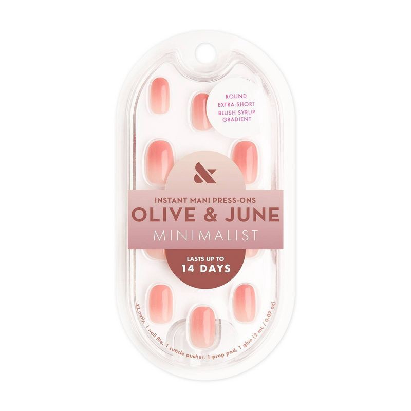 Olive & June Press-On Fake Nails - Minimalist - XS Round - Blush Syrup Gradient - 42ct