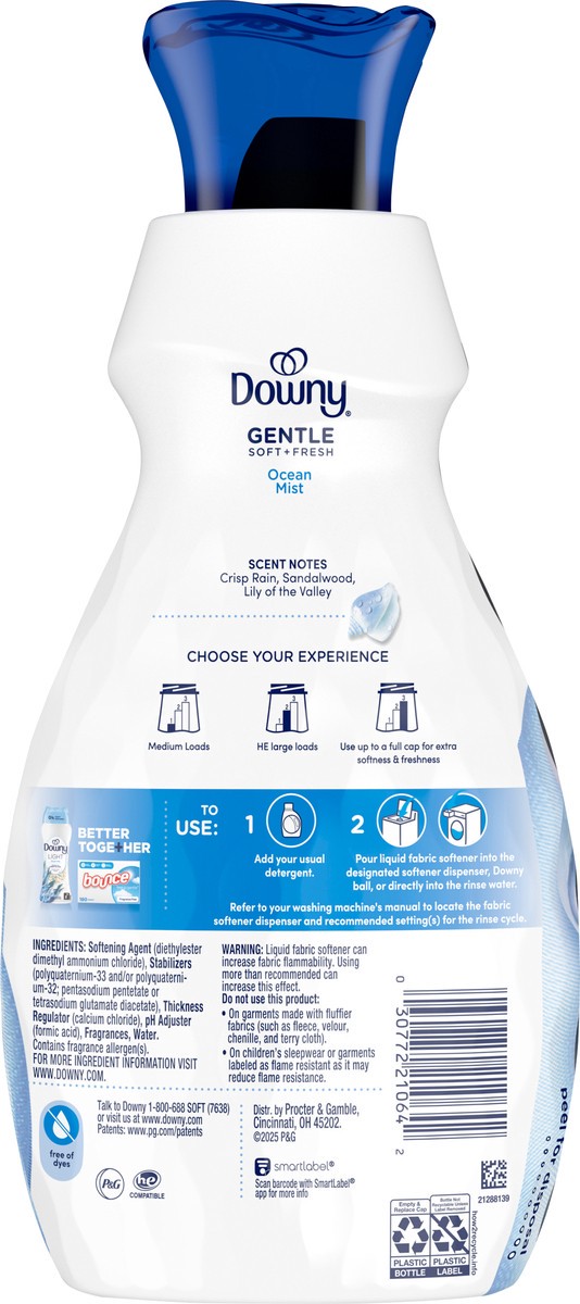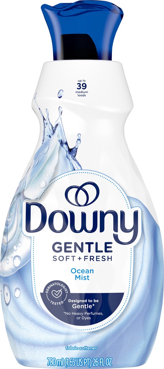 Downy Gentle Soft + Fresh Fabric Softener Liquid, Ocean Mist Scent, 26 FL OZ, 39 loads, Liquid Fabric Softener Designed to be Gentle on Skin