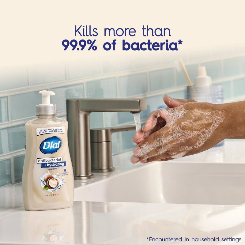 Dial® Antibacterial + Hydrating Hand Soap kills more than 99.9% of bacteria encountered in household settings. This formula is clinically proven to be antibacterial and moisturizing. Formulated with p…