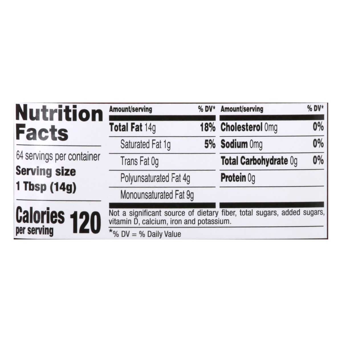 Contains 76% of the 1.6 g daily value for ALA per serving. Per 1 Tbsp: 120 calories; 1 g sat fat (5% DV); 0 mg sodium (0% DV); 0 g total sugars. See nutrition information for total fat content. High i…