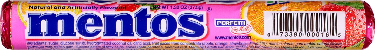Fruit Natural and artificial flavored. The chewy mint. www.mentos.com.