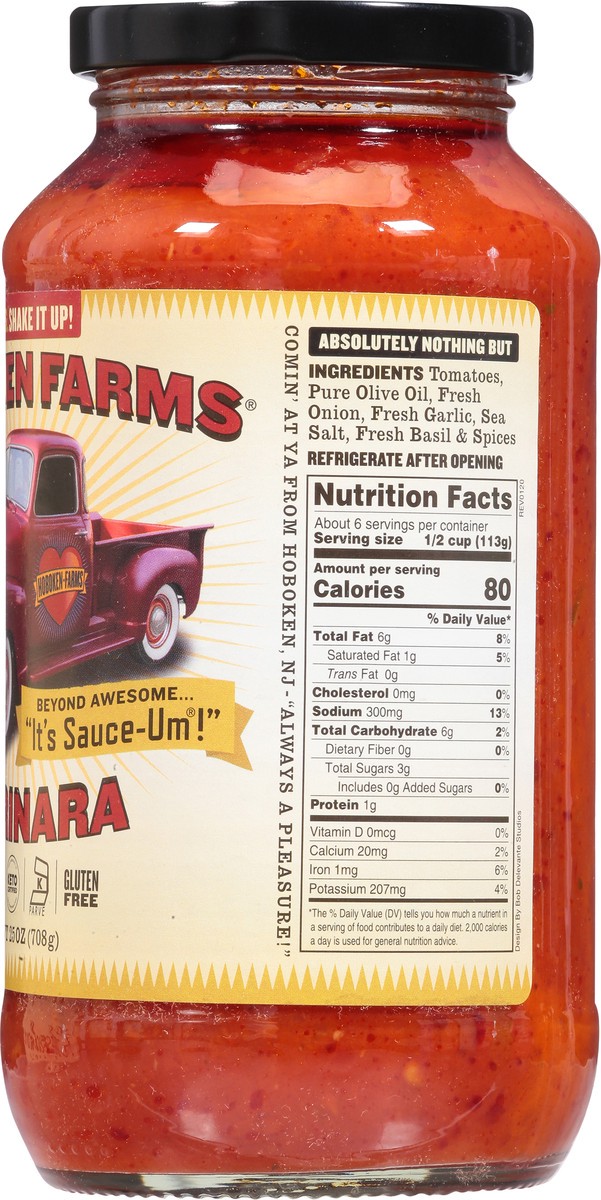 Tomatoes, Pure Olive Oil, Fresh Onion, Fresh Garlic, Sea Salt, Fresh Basil & Spices.