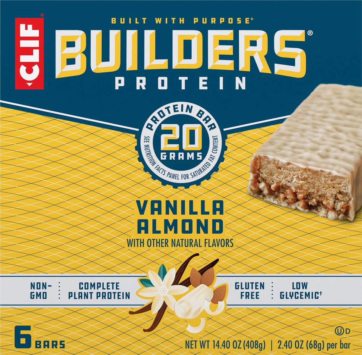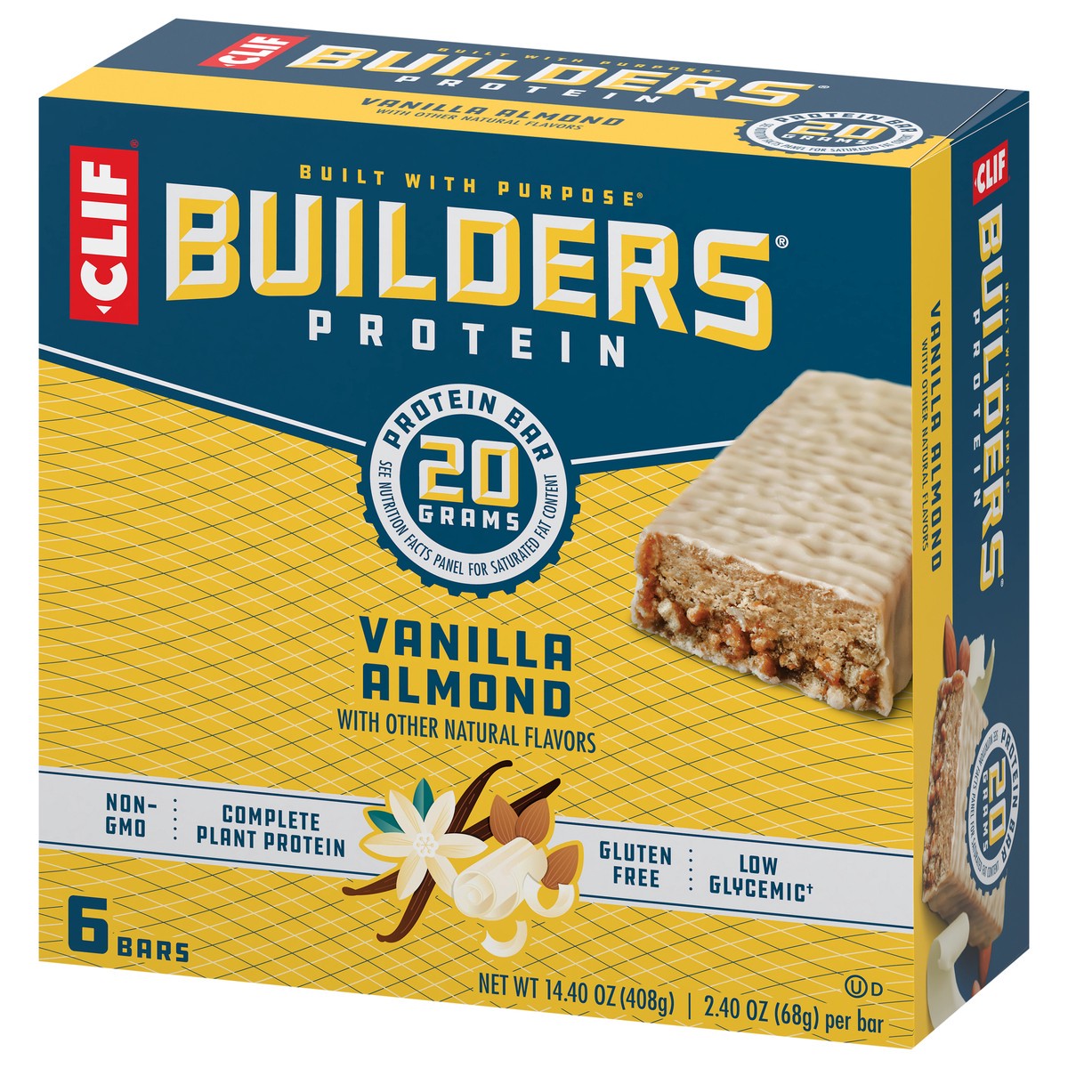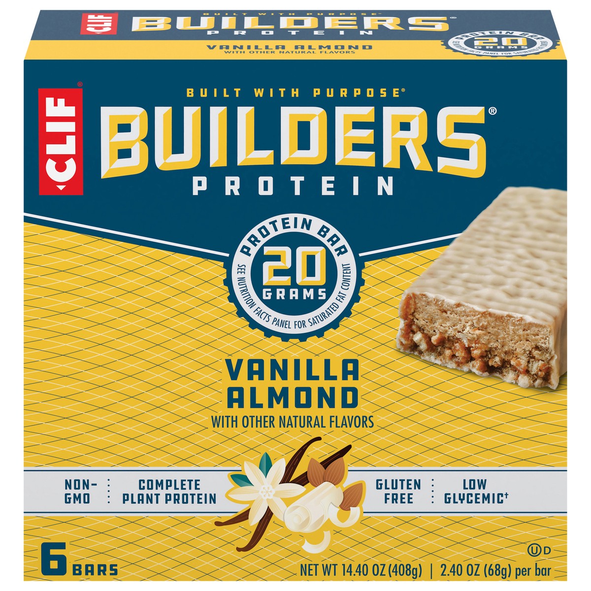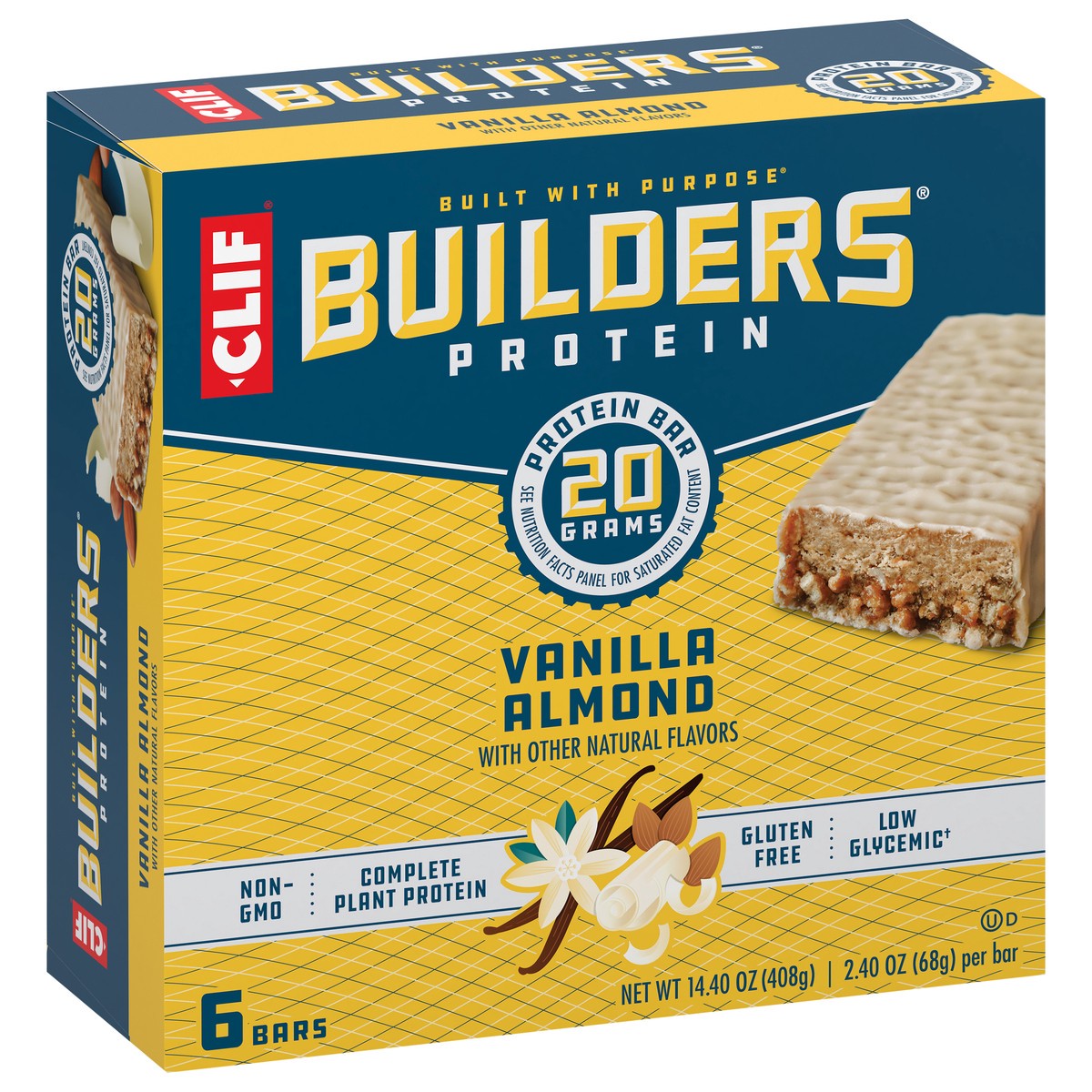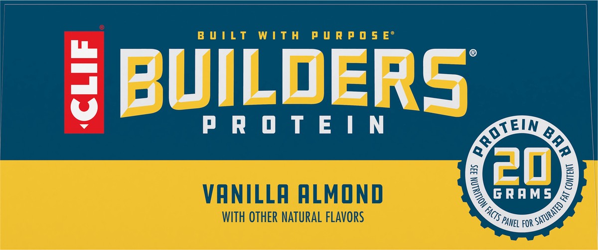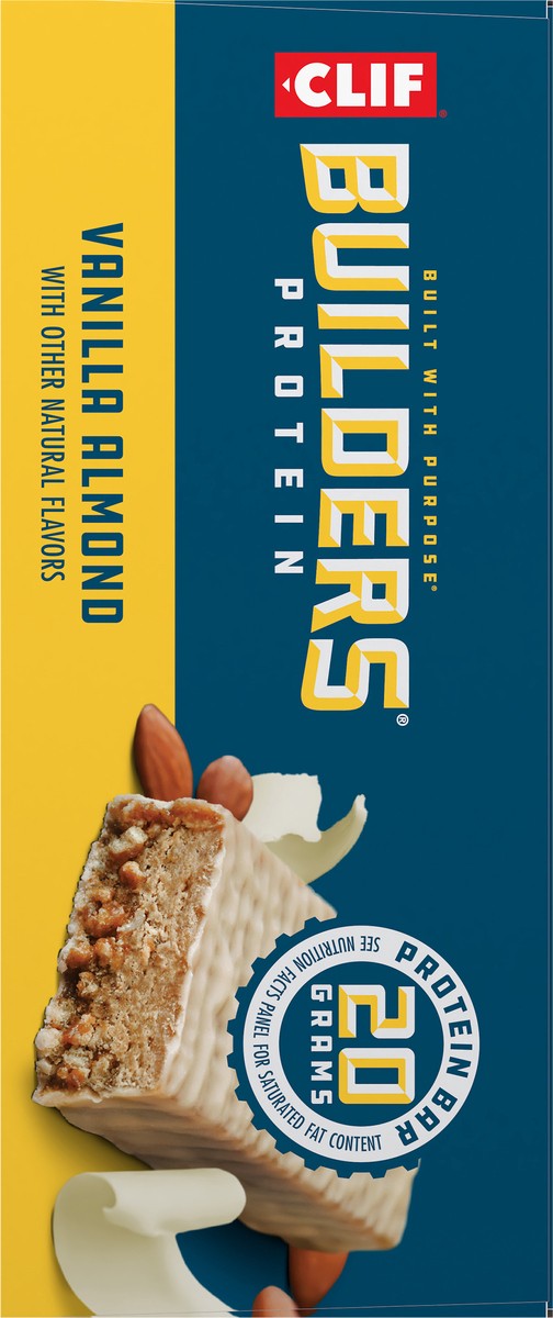CLIF BUILDERS Protein Bars - Vanilla Almond Flavor - 20g Plant Based Protein - Gluten Free - Non-GMO - Low Glycemic - No Artificial Sweeteners - 2.4 oz. (6 Pack)