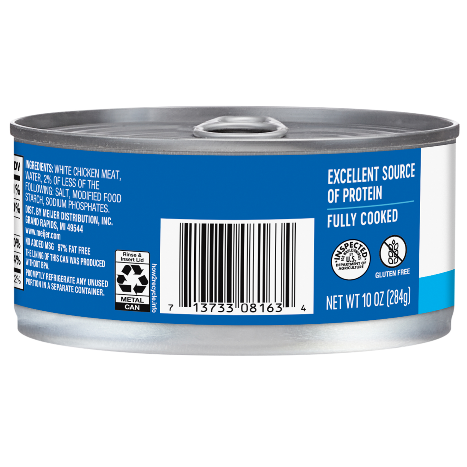 Make mealtime easy with Meijer Shredded Canned White Chicken. From savory salads to a winning game-time dip, this fully-cooked chicken is a tender meat the entire family will enjoy. Stack it on lettuc…