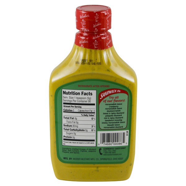 Stone ground with real jalapeno peppers. Since 1905. Tradition of excellence for over 100 years. Comments? Questions? Call toll free 1-800-548-2929. www.woebermustard.com.