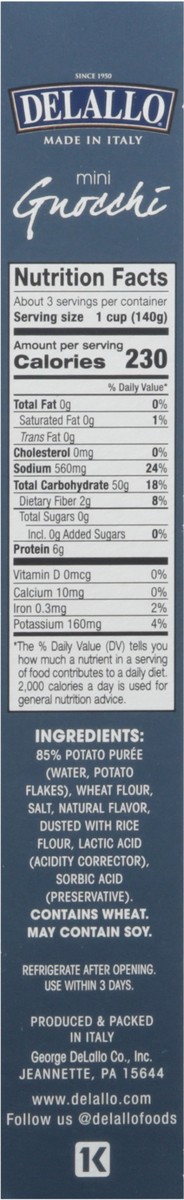 Delallo Pasta Gnocchi Potato Mini Box - 16 Oz