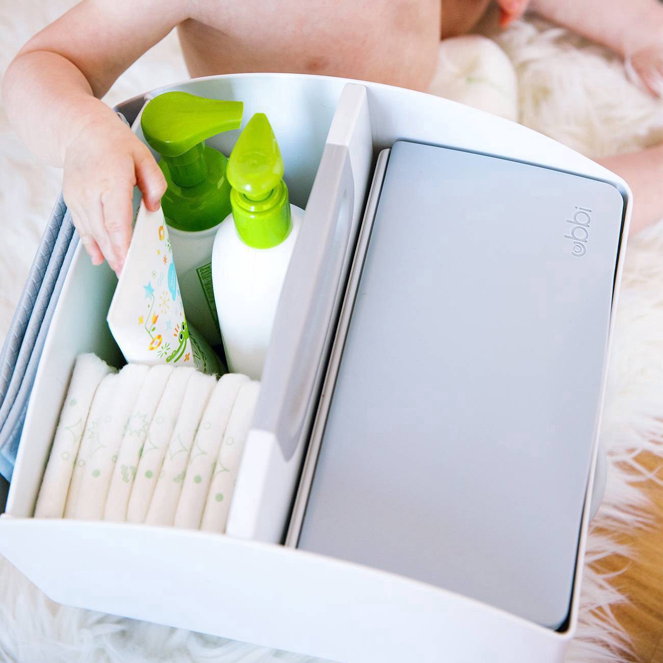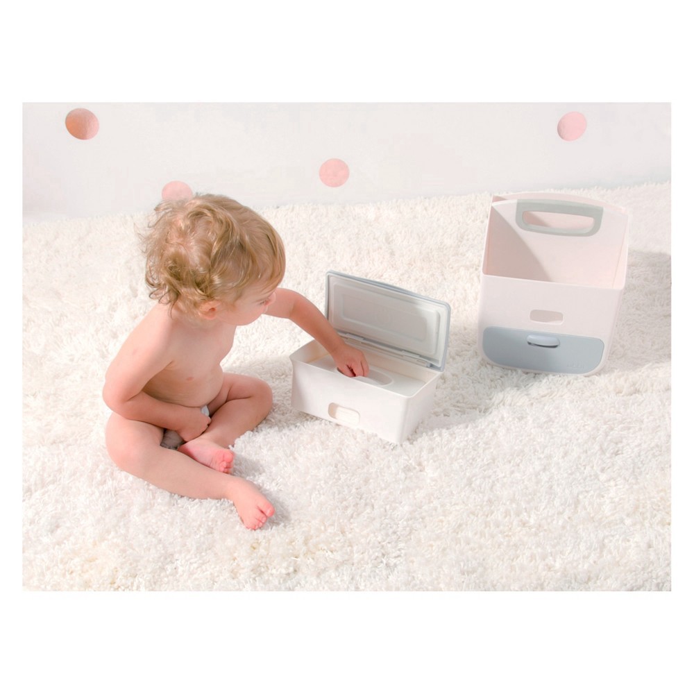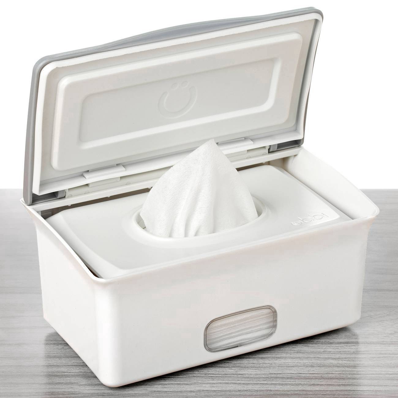 The Ubbi wipes dispenser makes diaper changes a breeze for both baby and parents. Featuring a weighted plate that ensures wipe comes out easily and one at a time, it's designed with a secure rubber se…