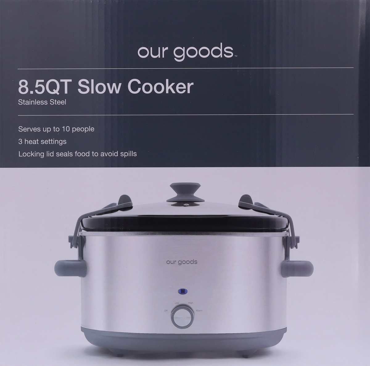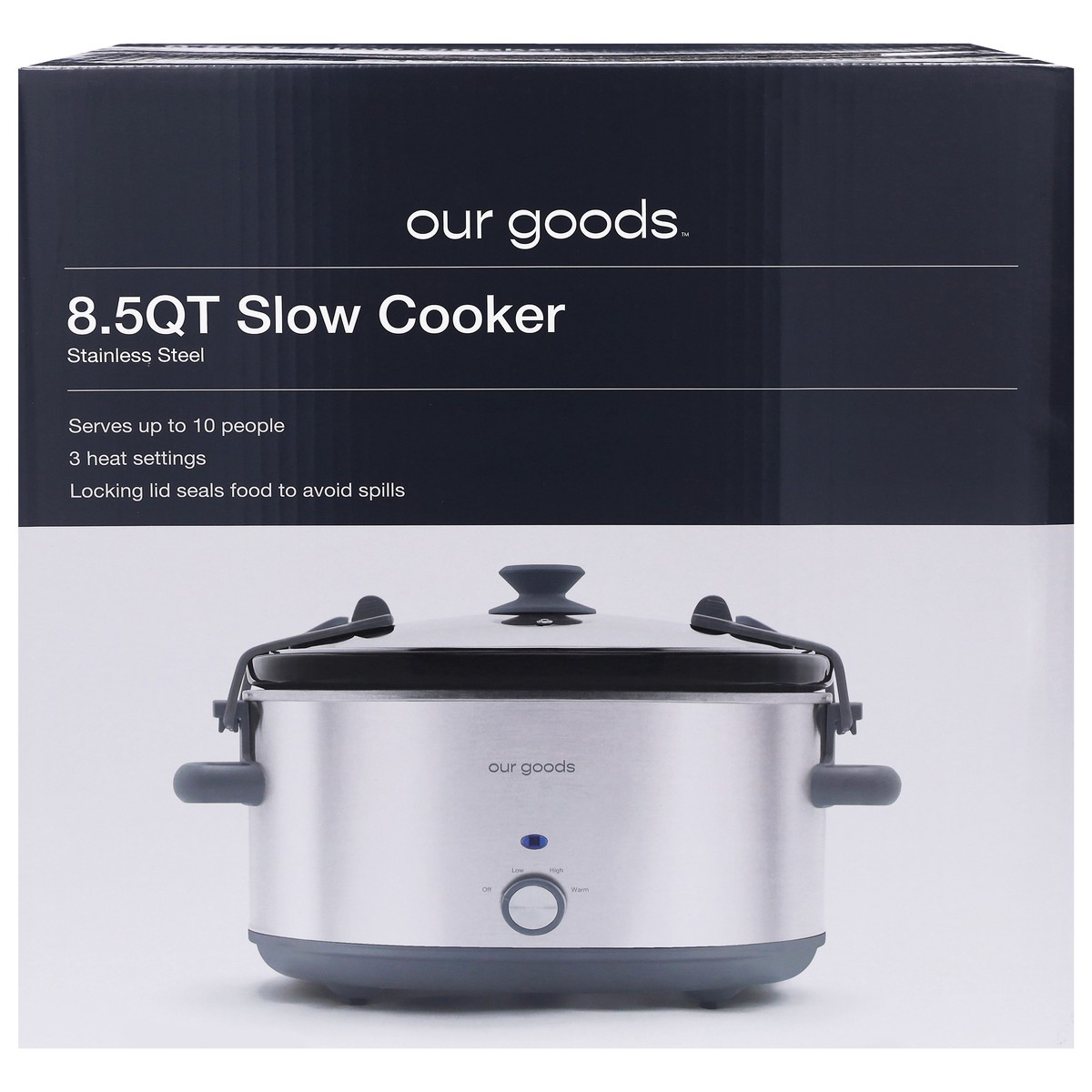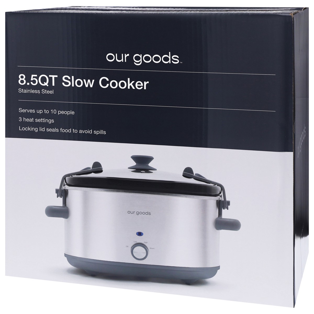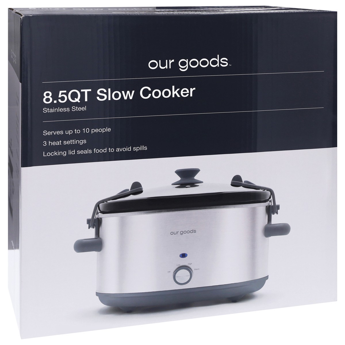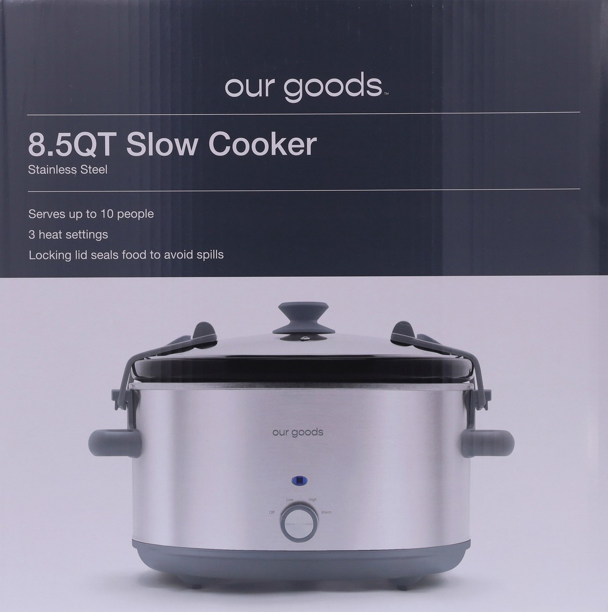 Add this our goods 8.5-quart slow cooker to your kitchen and serve up to 10 people. With 3 heat settings, you can cook a variety of meals for large family gatherings. Best of all, the stoneware pot an…