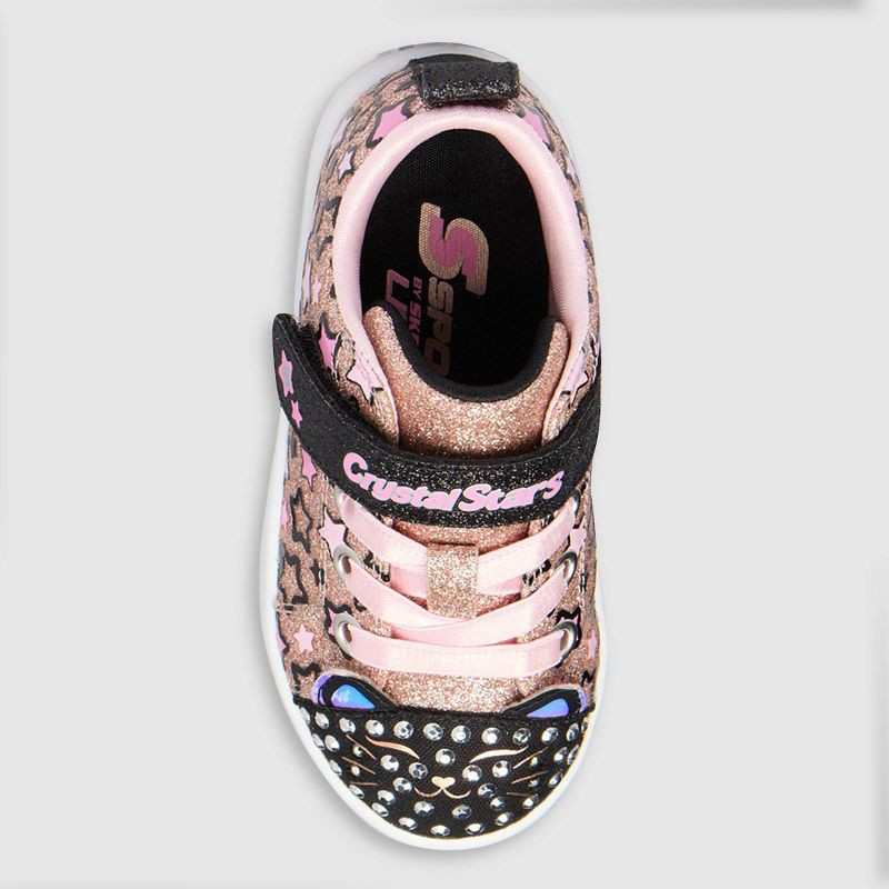 Dazzling style and easy-wearing comfort combine in Crystal Sparks by Skechers Kids' Namira shoe. This sneaker features a star 3D print on a glitter synthetic upper with soft satin stretch-laces, an ad…