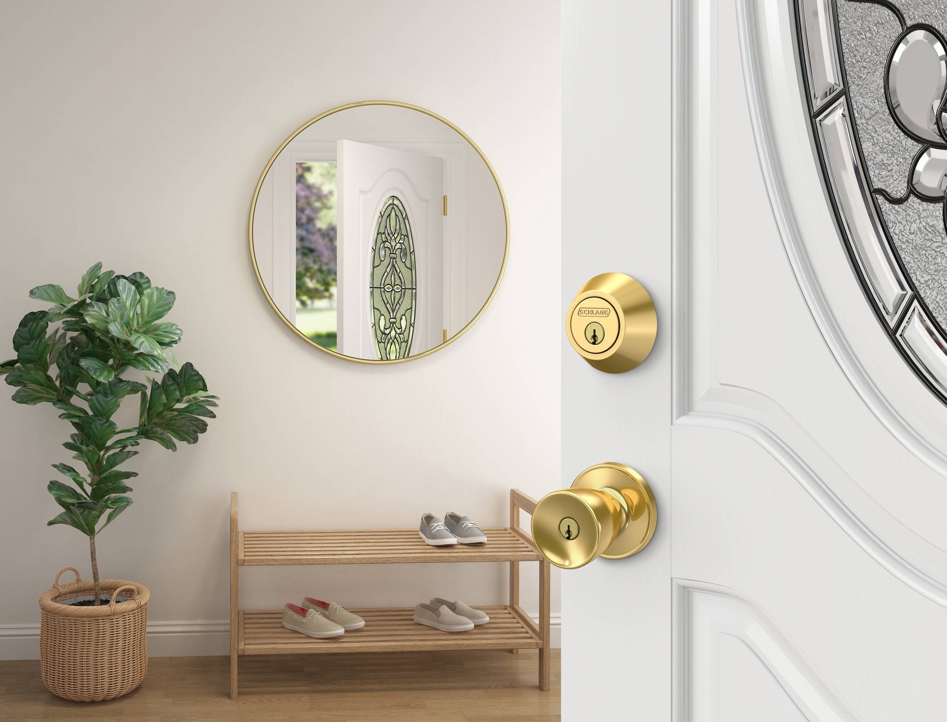 SECURITY: One-inch deadbolt with hardened steel core deadbolt paired with a keyed entry knob protects against forced entry; drill-resistant metal deadbolt cylinder housing; keyable to other Schlage lo…