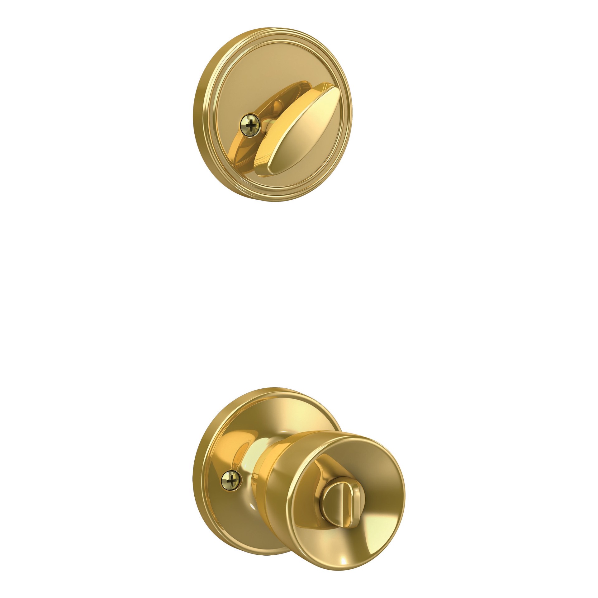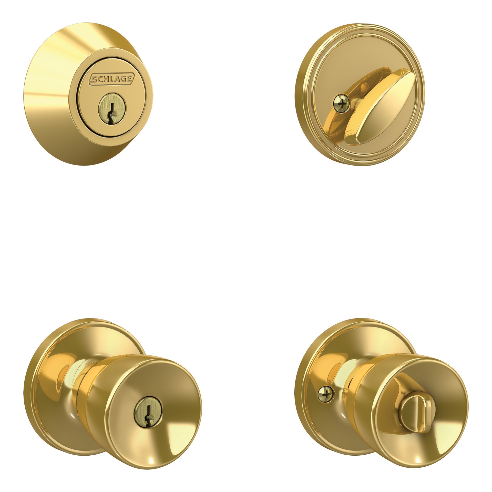 Home Front by Schlage Banyan Bright Brass Exterior Single-Cylinder Deadbolt and Keyed Entry Door Knob Combo Pack