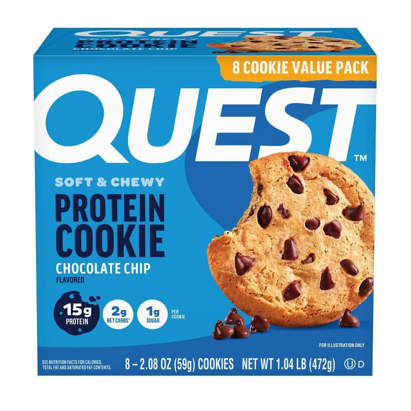 - Box contains 8 Chocolate Chip flavored Quest Protein Cookies