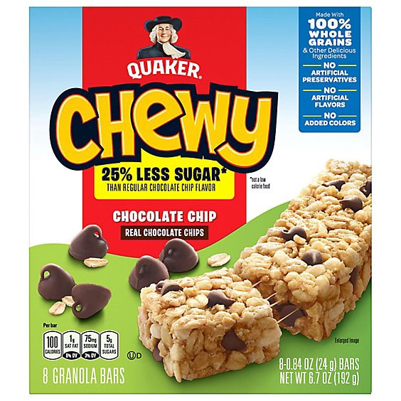 Quaker Chewy Granola Bars 25% Less Sugar Chocolate Chip - 8-0.84 Oz