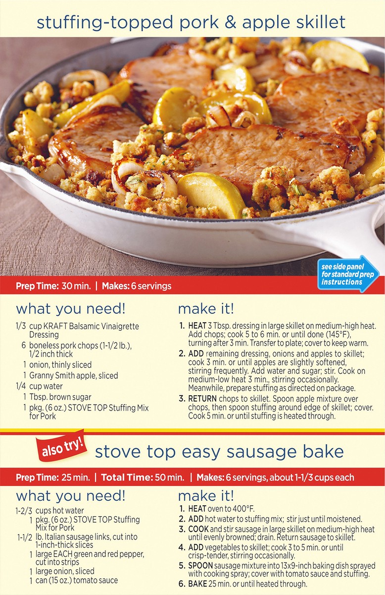 Make any family dinner something to celebrate with Kraft Stove Top Pork Stuffing Mix. A blend of fresh baked bread crumbs with real herbs and spices is the perfect pairing for pork chops and brings a …