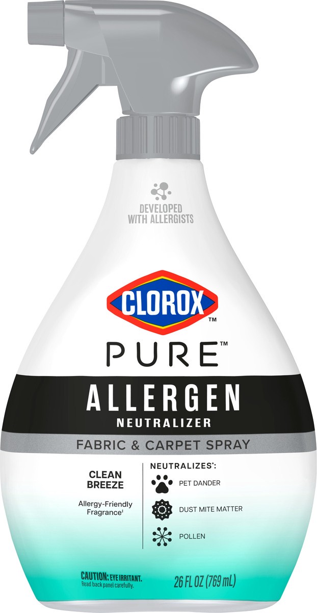 - NEW ALLERGEN NEUTRALIZER SPRAY: Clorox PURE Allergen Neutralizer Fabric and Carpet Spray neutralizes pet dander