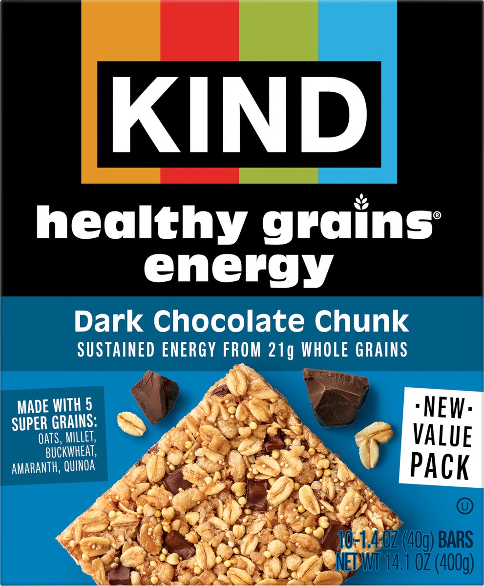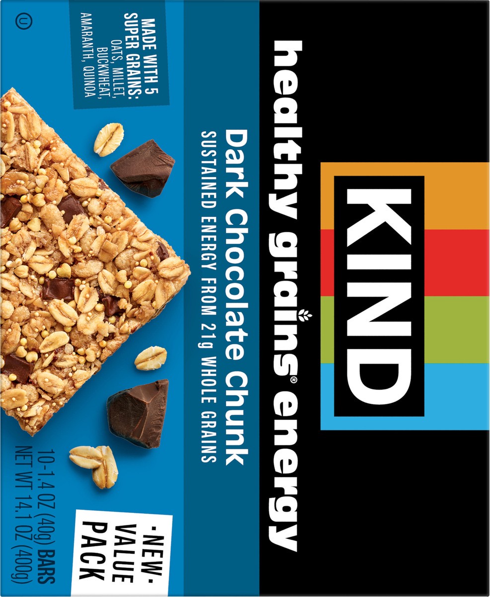 KIND Dark Chocolate Chunk Healthy Grains Energy Bars, 10 Count, 1 Cardboard Box