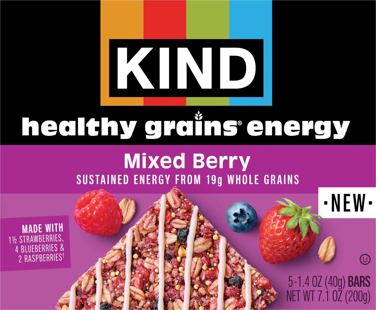 KIND Healthy Grains Energy Bars, Mixed Berry, 19g Whole Grains, Made with Super Grains, Gluten Free Snacks, 5 Ct, 7.1oz