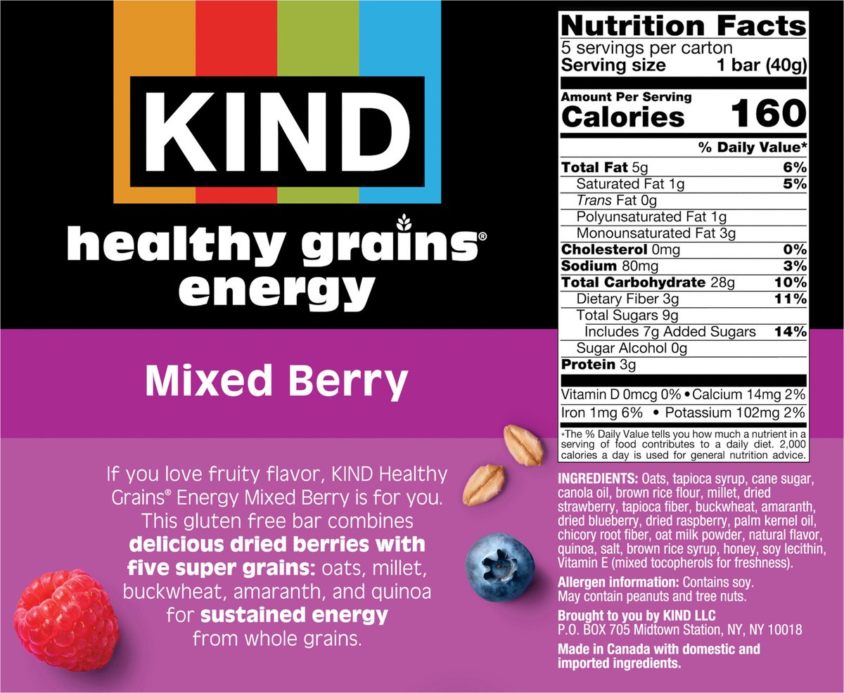 Discover all kinds of good in every bite of KIND Mixed Berry Healthy Grains Energy bars. If you love delicious fruit flavors, these are for you! Our gluten free snacks combine dried berries with five …