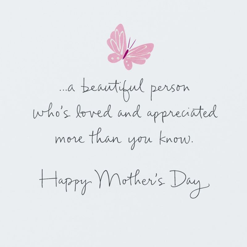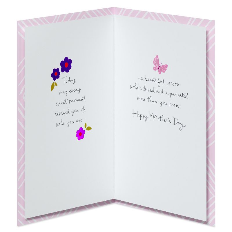 - Inside Message: Today, may every sweet moment remind you of who you are... a beautiful person who's loved and appreciated more than you know. Happy Mother's Day.