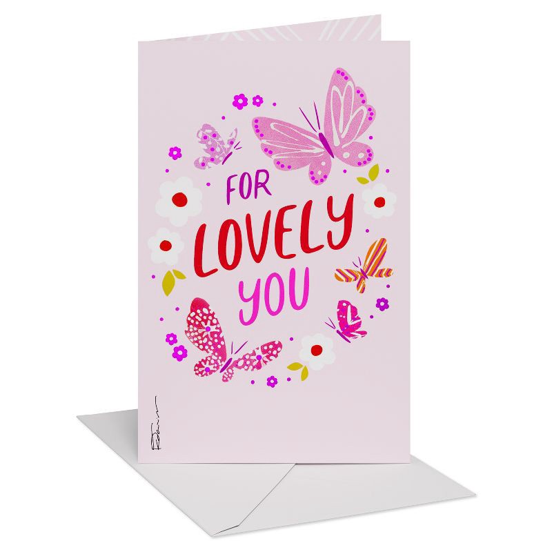 - This charming Mother's Day card features a delightful spring design with vibrant butterflies and flowers, accentuated by a thoughtful, handwritten-style font.