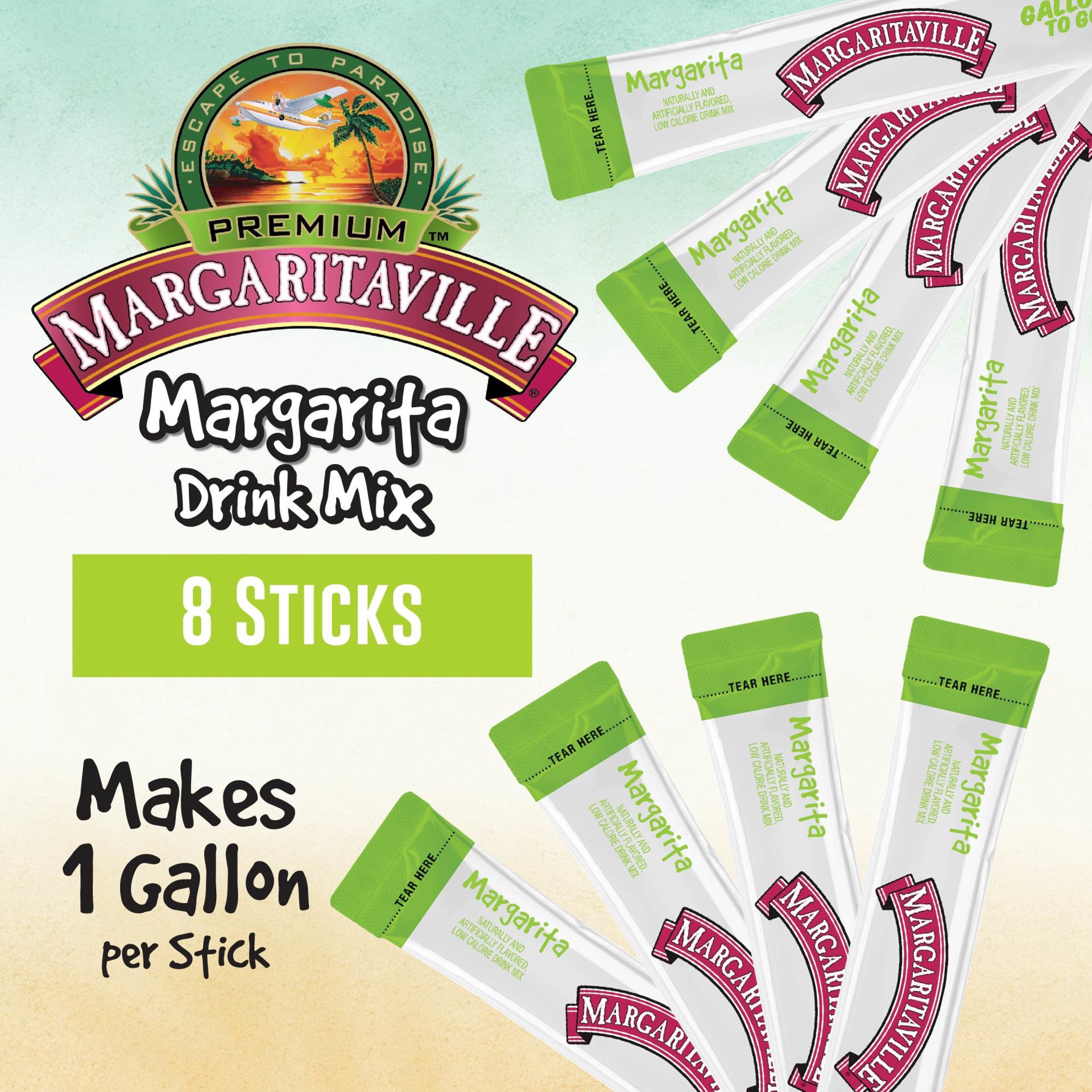 - QUICK AND CONVENIENT: Now you can share and enjoy the bold fruit flavor of Margaritaville anywhere you go; Each packet of Margaritaville drink mix is perfect for one gallon-sized pitcher; Simply add one stick to a gallon-sized pitcher of water