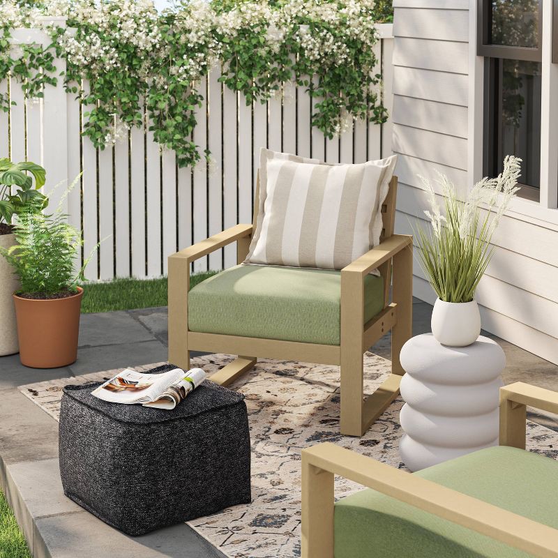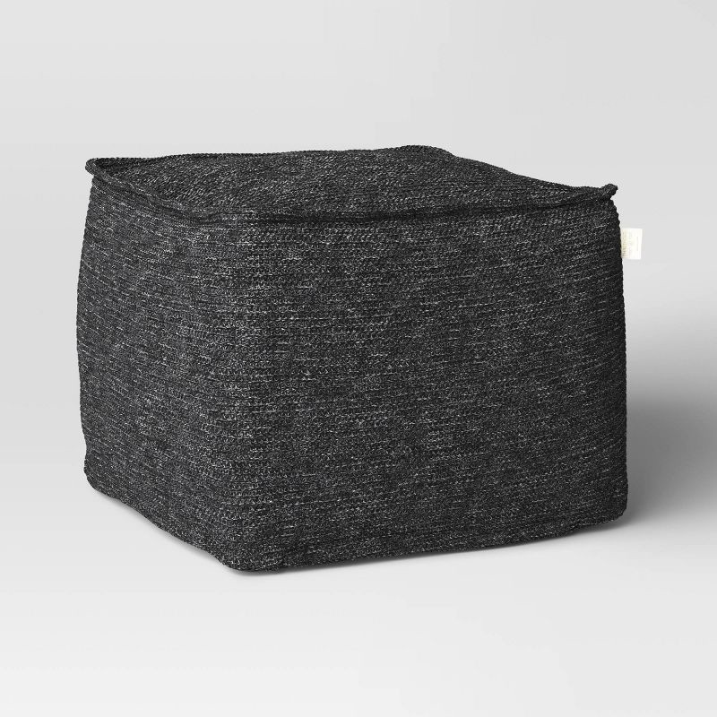 Elevate your open-air seating with this Outdoor Patio Pouf from Threshold™. This square pouf ottoman upholstered in black olefin knit fabric with a UV-resistant finish coordinates well with any decor …