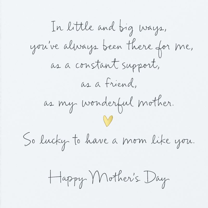 - Inside Message: In little and big ways, you've always been there for me, as a constant support, as a friend, as my wonderful mother. So lucky to have a mom like you. Happy Mother's Day.